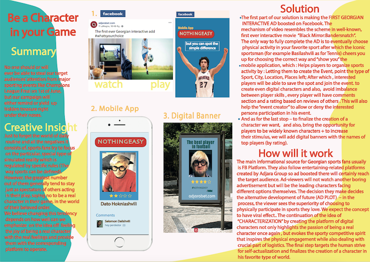 Briefs and Works 2019 Cannes Digital 2019 Branding.ge – Gvantsa Gelovani, Sandro Kavtaradze – Digitalbranding.geGvantsa Gelovani / Sandro Kavtaradze 📎 Final Work PDF 📋 Brief – Digital – 2019 Young Cannes Lions 📋 Works – Digital – 2019 Young Cannes Lions 🦁 Winners – Digital – 2019 Young Cannes Lions 📋 Source – Marketer.ge Previous Post Mr.Wolf - Davit Kharitonashvili, Nika Zhgeria - Digital Next Post 🥈 JWT Metro - Alex Chikovani, Nutsa Togonidze - Digital